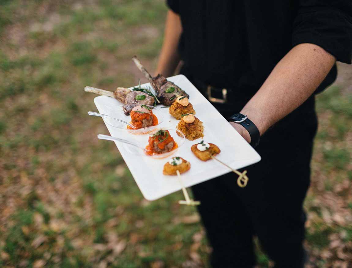 Wedding meals are as unique and varied as the people getting married. Whether your dream is a barbecue on the porch or a sophisticated display of gourmet hors d’oeuvres, we provide the serving style that best compliments your mood and budget.